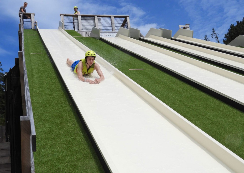 De groep start allemaal tegelijk op het aquapark. Daarna gaat een deel van de groep schansspringen en een deel gaat suppen over het meer. De leerlingen kunnen vooraf de activiteit uitkiezen die ze het liefste willen doen. Tussendoor kan je warme nacho's en een blikje fris ophalen in de kiosk.